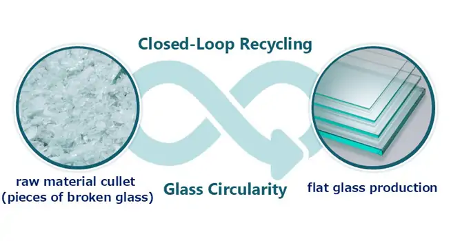Este procesamiento de los residuos de vidrio de ventana para la misma aplicación con una calidad equivalente, tiene como objetivo reducir los residuos industriales. Además, al aumentar la proporción de vidrio de desecho utilizado en la fabricación de vidrio, la iniciativa busca reducir las emisiones de gases de efecto invernadero (GEI) y conservar el capital natural mediante la reducción del consumo de materias primas vírgenes como la arena de sílice y el carbonato sódico.