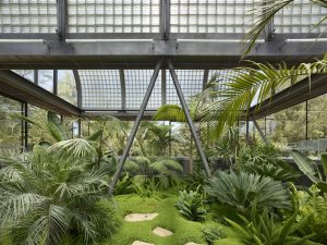 Esta construcción recrea las sutiles variables atmosféricas que requieren estas plantas gracias a de naturaleza con la estructura portante y los sistemas de acondicionamiento mecánico.