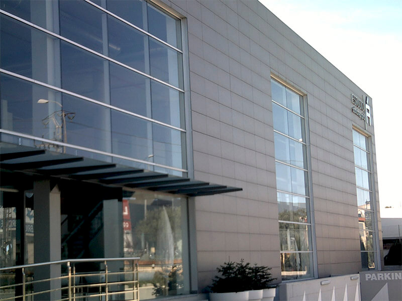 Para que el conjunto funcionase con armonía, Cristalería Derenzi fabricó e instaló los diversos paneles de vidrio realizados a medida, tanto en la fachada, como en los espacios divisores del interior y en las puertas de acceso, convirtiendo las instalaciones de Sánchez Plá del Polígono Industrial Fuente del Jarro en un referente de la decoración de interiores.